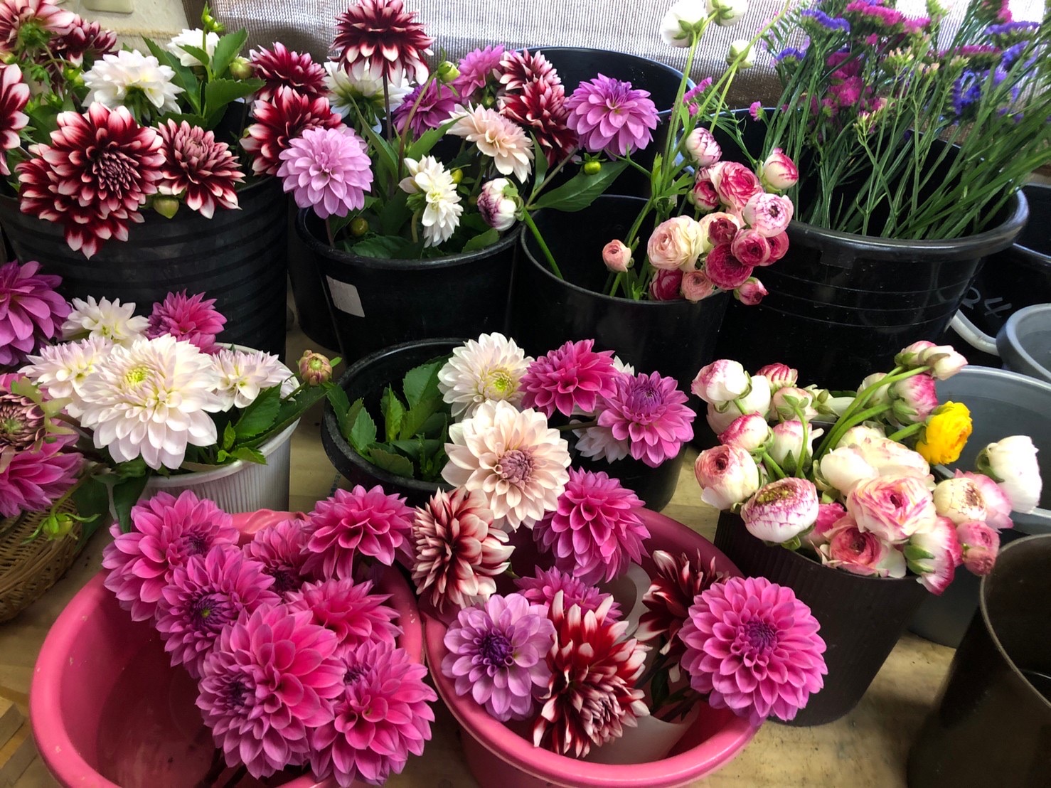 (祐子さん)カラー、パンパスグラス、ダリヤ、スターチス、ラナンキュラスなどご覧の通りかなり多くの品種を育てています。