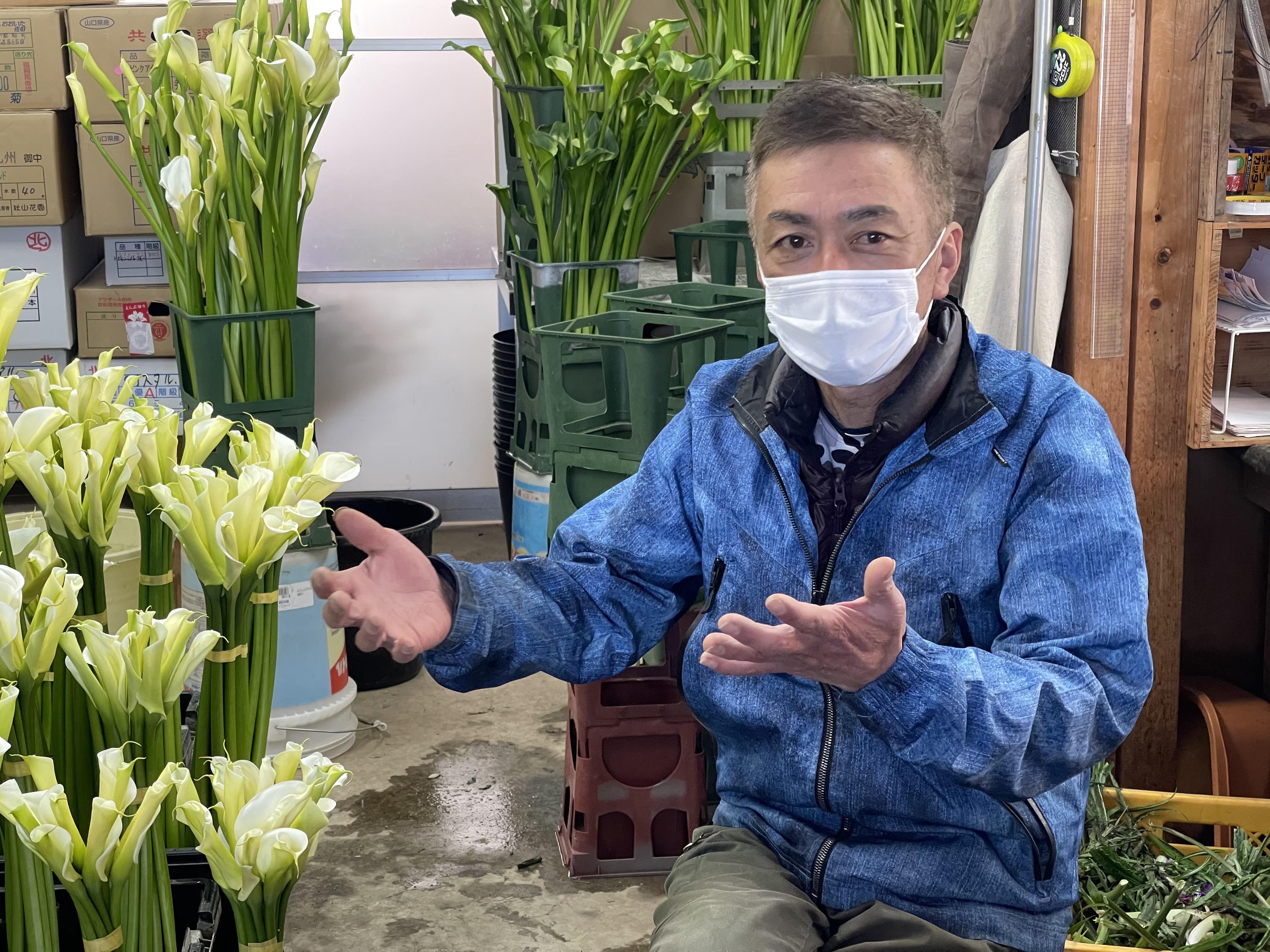 (洋良さん)祖父の代から花農家となり私で3代目です。以前、筵内は湿地で、その頃は米づくりに適した環境ではなかったそうです。でも花のカラーを育てやすい環境だったとかで、そこから花づくりが始まったと聞いています。