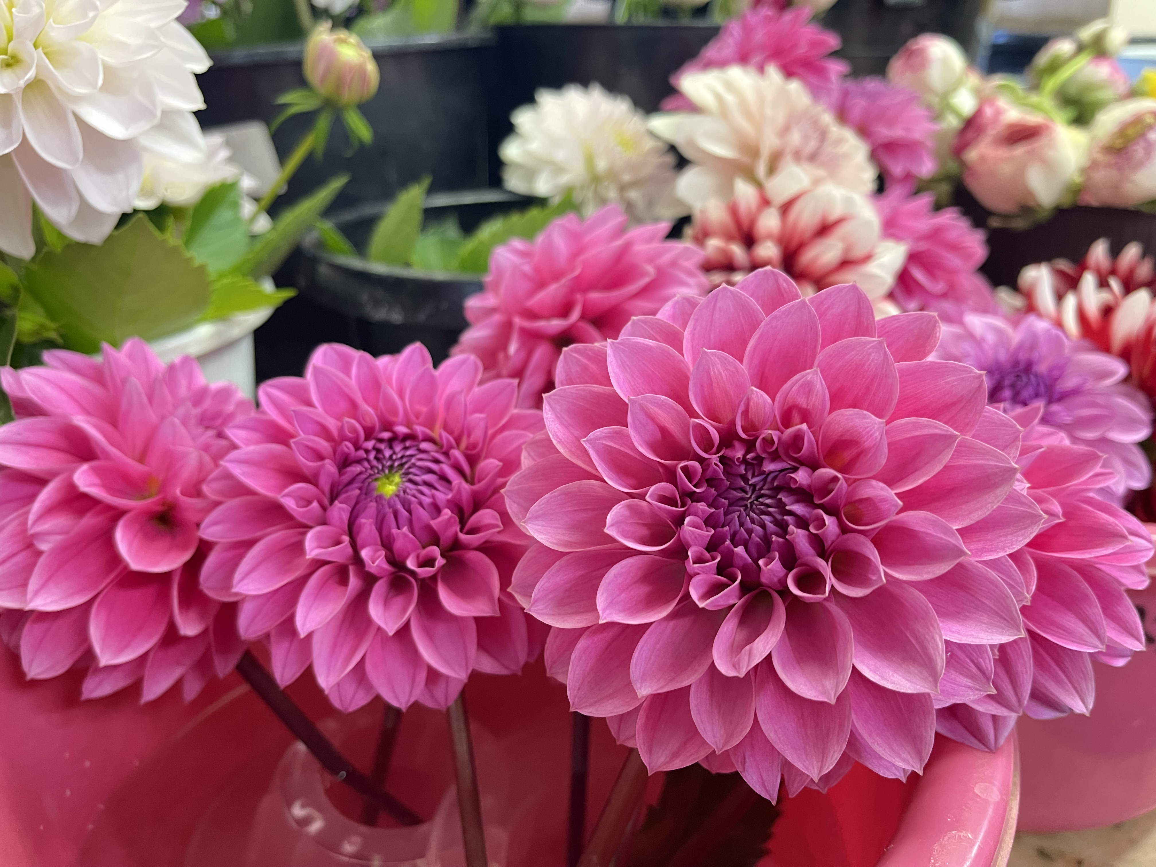 水やりの加減はその花にとって適切か?病気はしていないか?害虫はいないか?咲き加減はどうか?花の特徴や成長の過程と向き合いながら細かなケアを続け、ここぞのタイミングで出荷する。